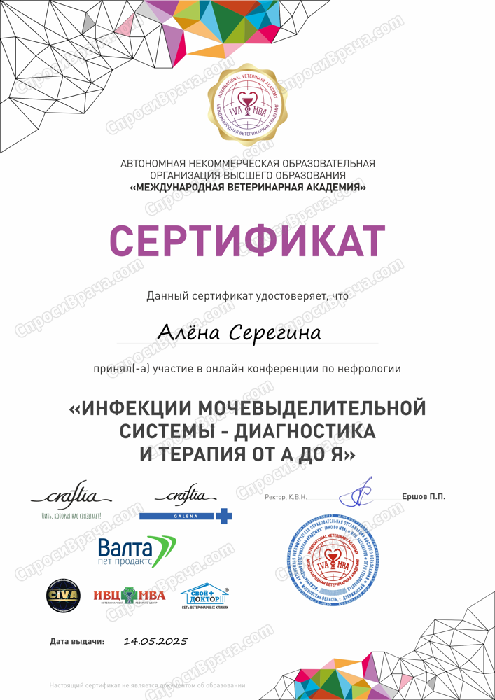 Я врач терапевт, более углубленно занимаюсь эндокринологией и нефрологией. Работаю с кошками и собаками, в крайних случаях с КРС и МРС. Так как выпускники ветеринарных учебных заведений должны уметь все, обладаю базовыми хирургическими навыками, средняя ступень знаний в визуальной диагностики (УЗИ).