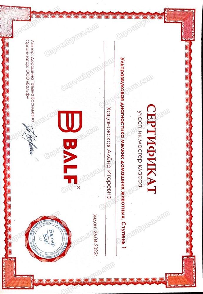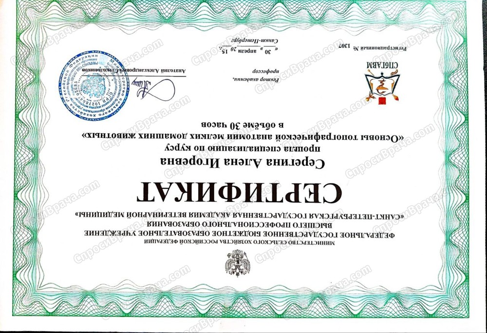 "Ультразвуковая диагностика мелких домашних животных. Ступень 1" 2022г, Санкт-Петербург