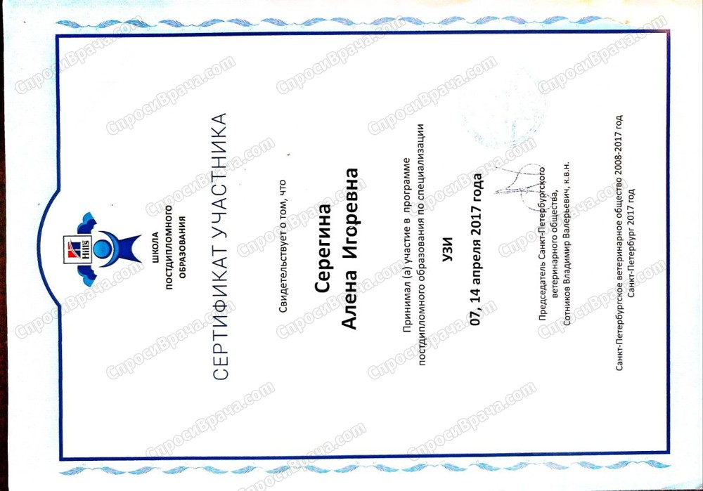 Программа постдипломного образования по специализации "УЗИ", 2017 г, Санкт-Петербург