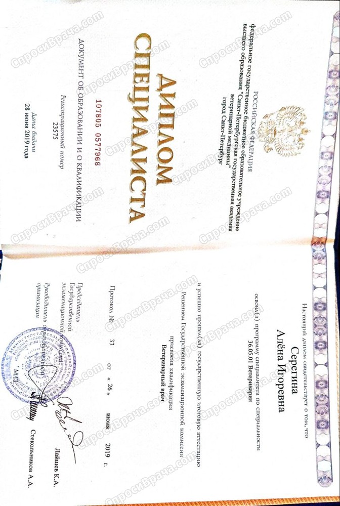 2014-2019, Санкт-Петербургская государственная академия ветеринарной медицины, факультет ветеринарной медицины, ветеринар