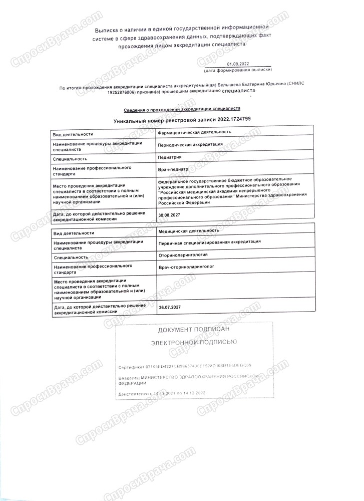Врач оториноларинголог, педиатр.