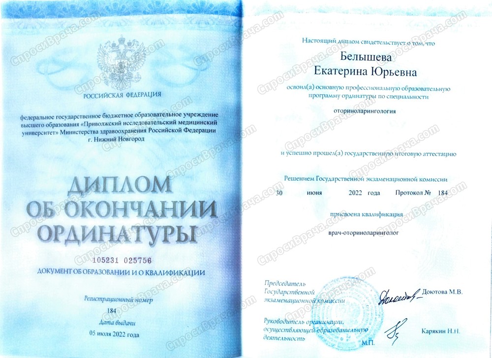 Врач-ординатор ГБУЗ НО "НОКБ им Семашко" 1 -лор отделение 2020-2021;врач ординатор ГБУЗ НО "НОДКБ" лор-отделение, поликлинический центр.