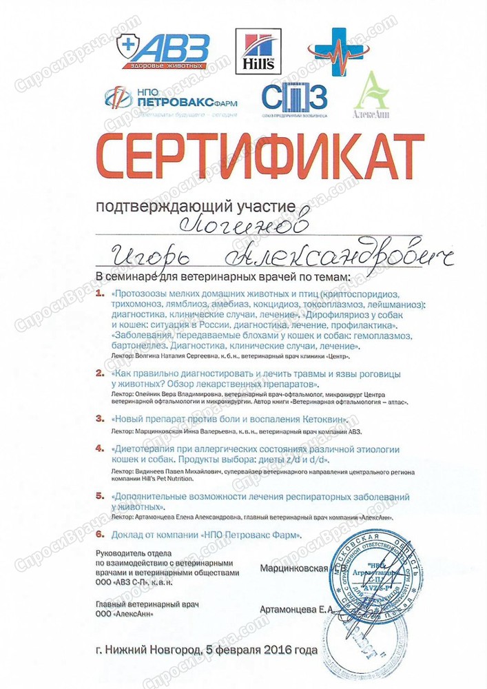 Я ветеринарный врач, закончил Ивановскую государственную сельско-хозяйственную академию в 2011 году, в 2014 году окончил аспирантуру в ФГБУ "ВНИИЗЖ" г. Владимир. Работал в ветеринарных клиниках Иваново, Нижнего-Новгорода. Сейчас имею собственную ветеринарную клинику.