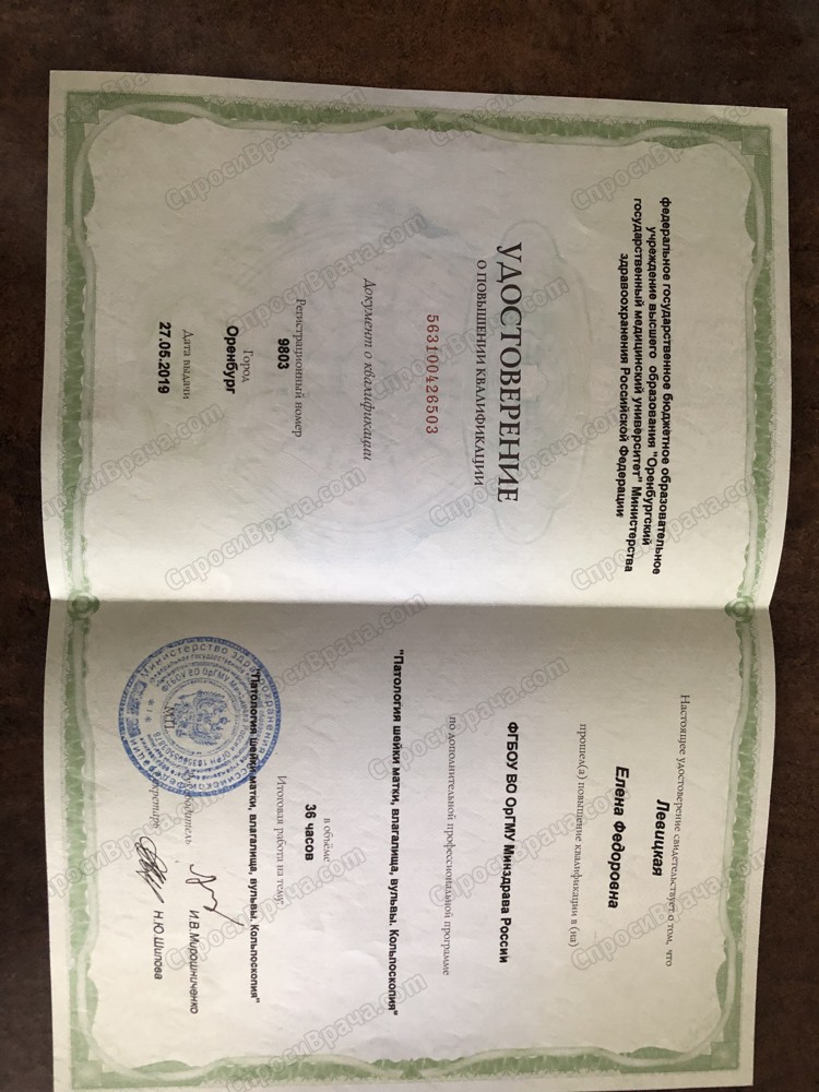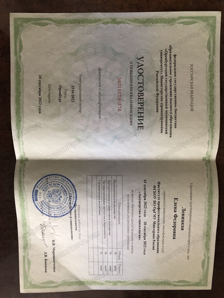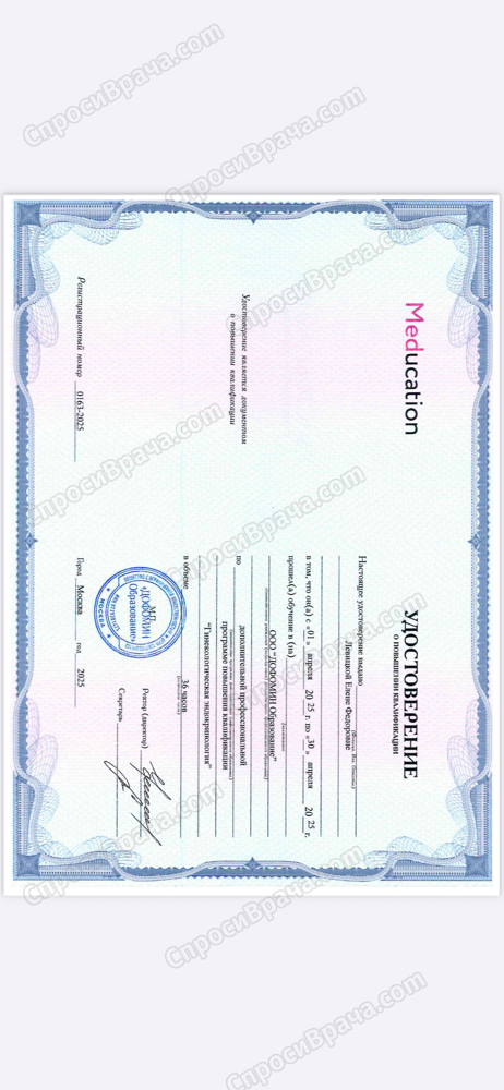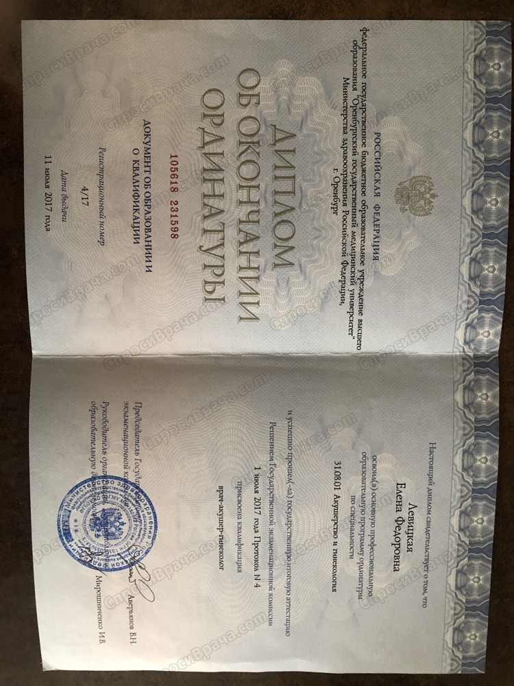2009-2015 ОрГМУ, «лечебное дело», врач. 2015-2017 ОрГМУ, ординатура «акушерство и гинекология», врач акушер-гинеколог