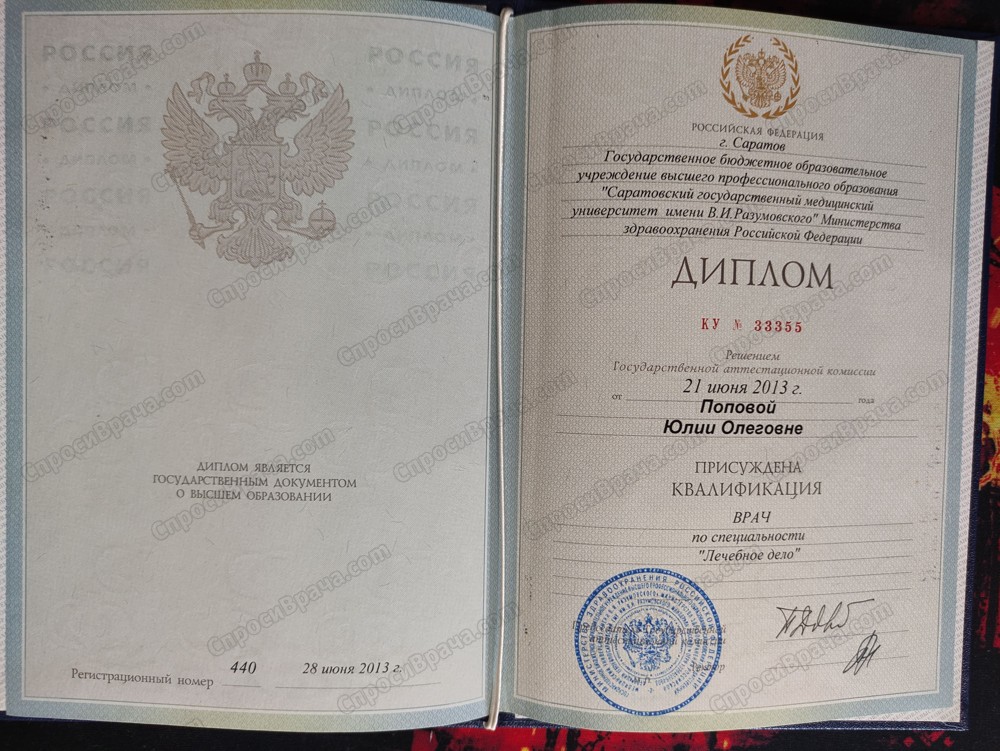 2013-2014гг - врач-интерн ГБУЗ Саратовская городская клиническая больница √1 им. Ю. Я.Гордеева
