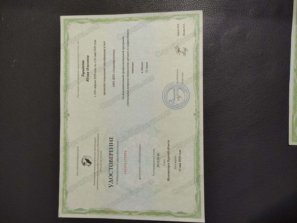 2023г- Курс повышения квалификации по Акушерству с применением обучающих тренажеров, г. Тамбов