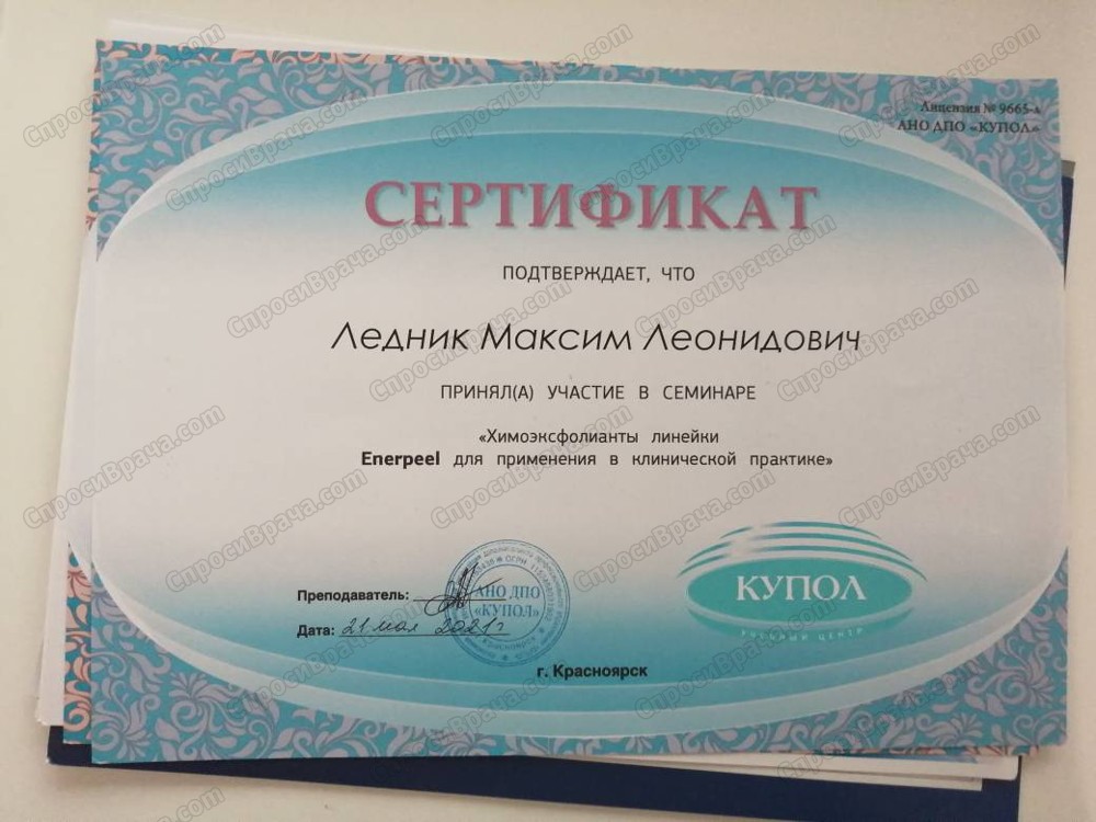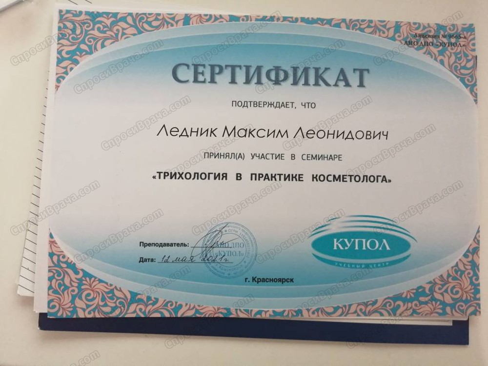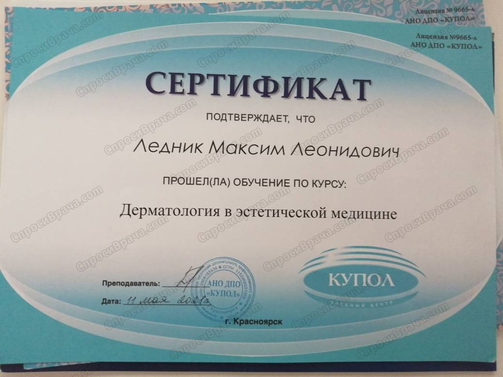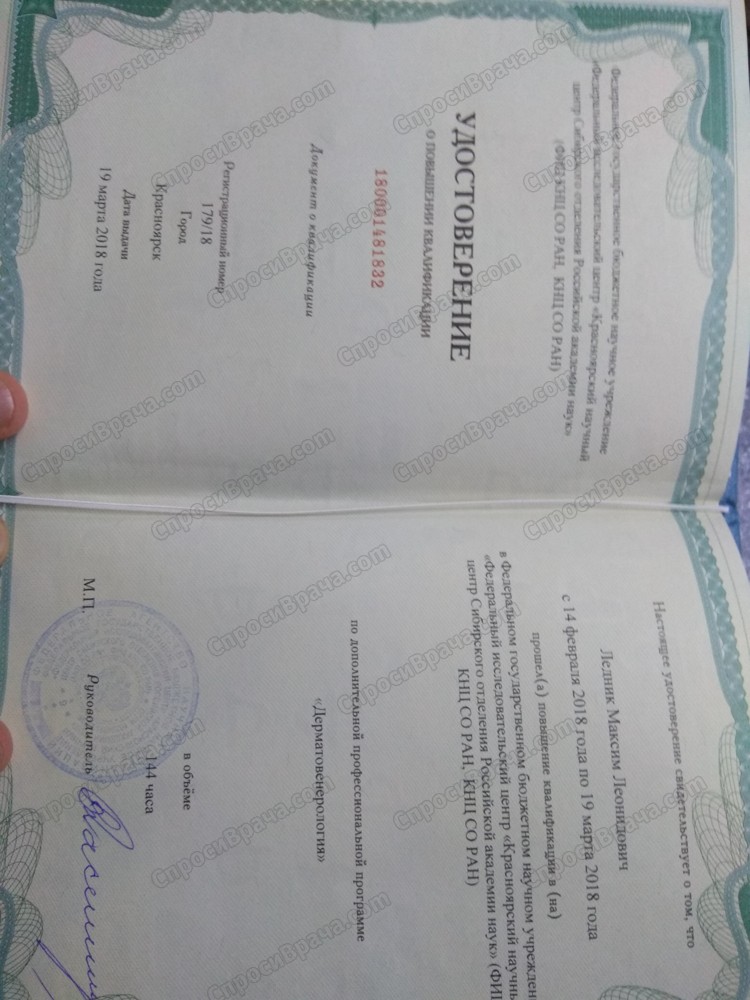 Красноярский государственный медицинский университет ,в 2008 году,по специальности врач-дерматолог.