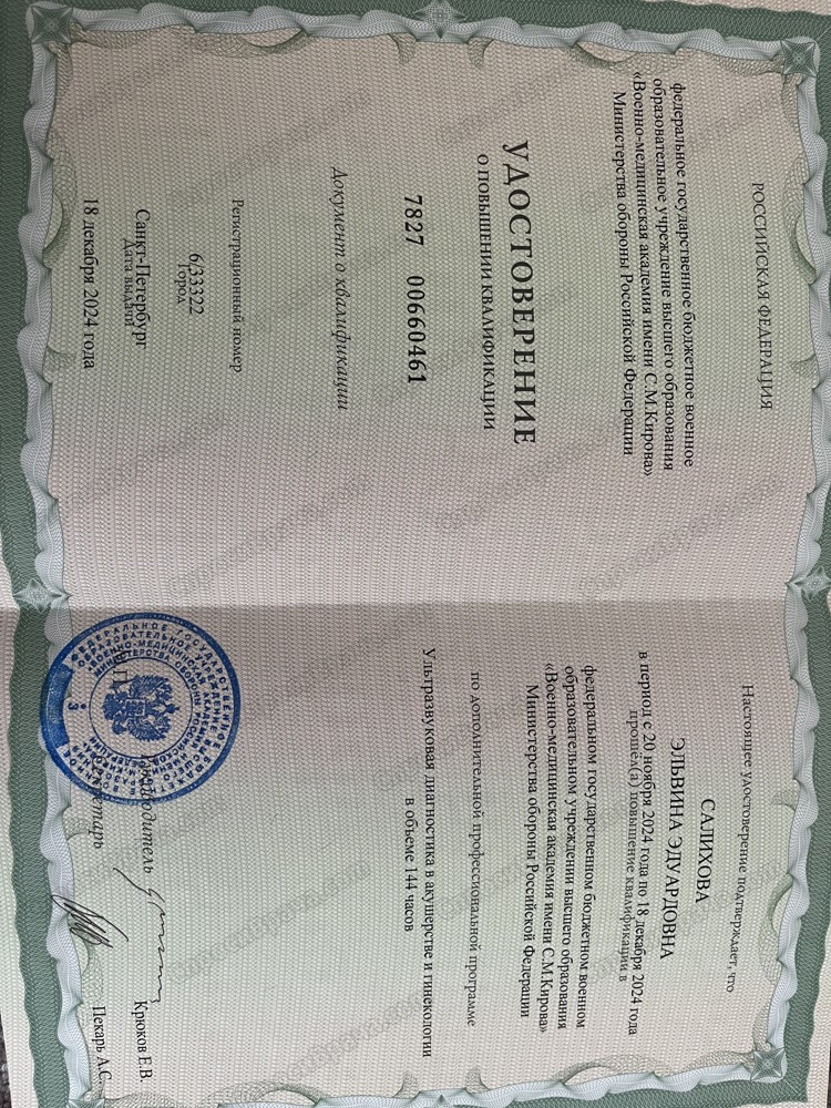 Имею переподготовку по УЗД в акушерстве и гинекологии.