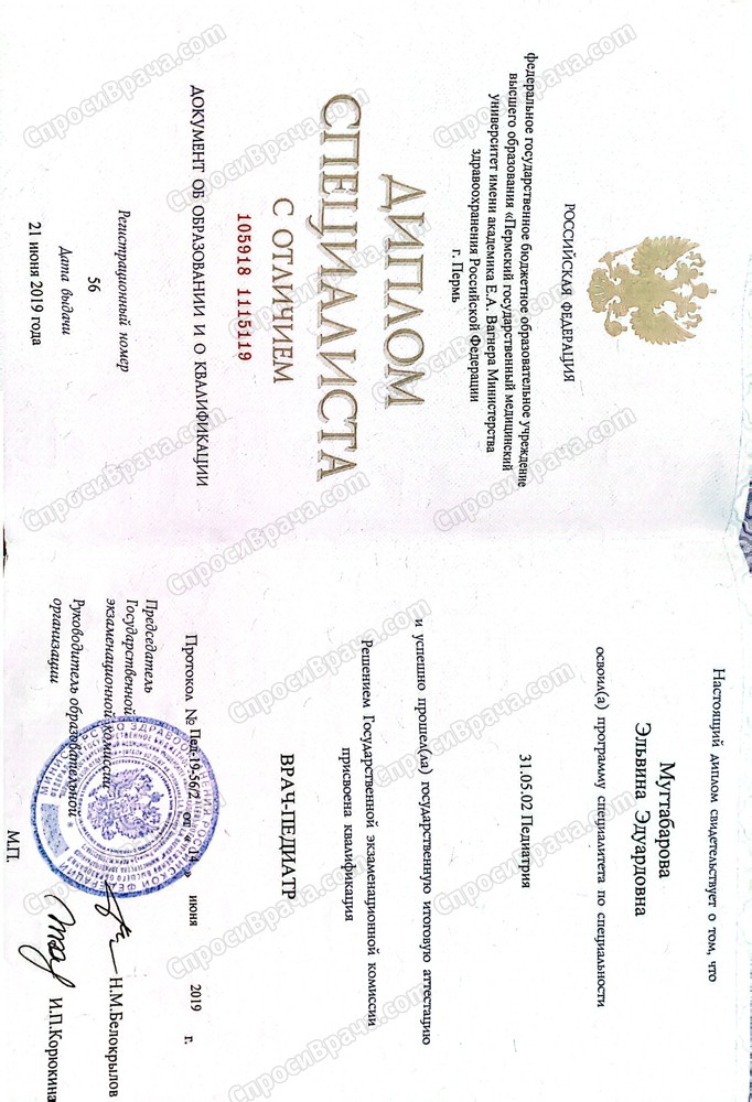 2013-2019,ПГМУ им.Ае.Е.А.Вагнера, педиатрический факультет,врач-педиатр
