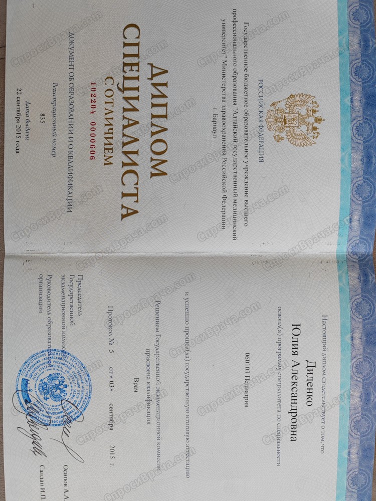 2009-2015, ГБОУ ВО "Алтайский государственный медицинский университет" Министерства здравоохранения РФ г. Барнаул, педиатрический факультет, педиатрия