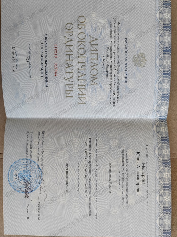 2024 г. - ПК "Современные аспекты диагностики и лечения инфекционных заболеваний" - 72 часа.