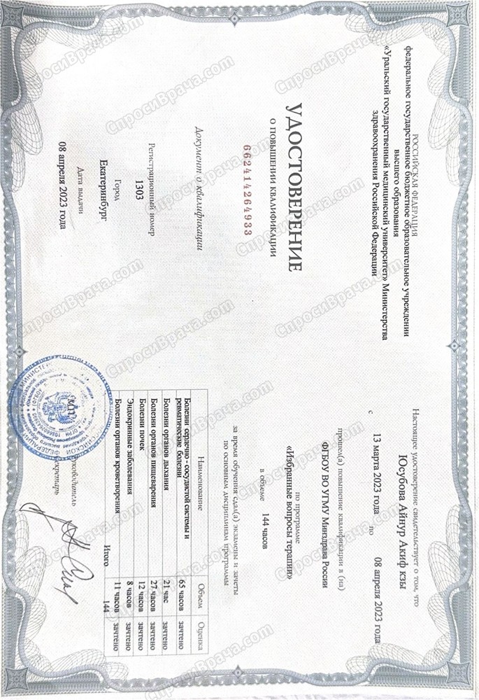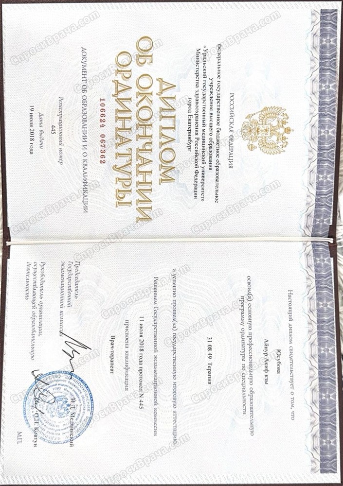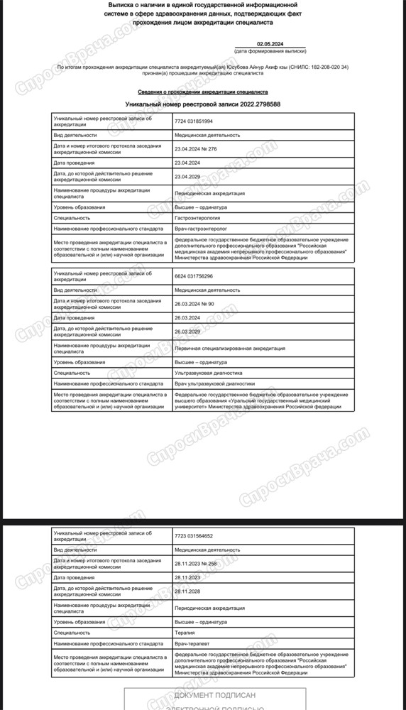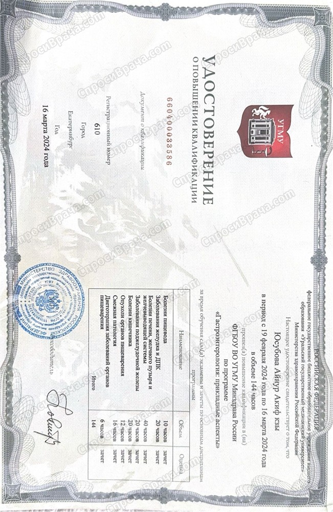 2019 - Первичная переподготовка по специальности "Гастроэнтерология", Уральский государственный медицинский университет