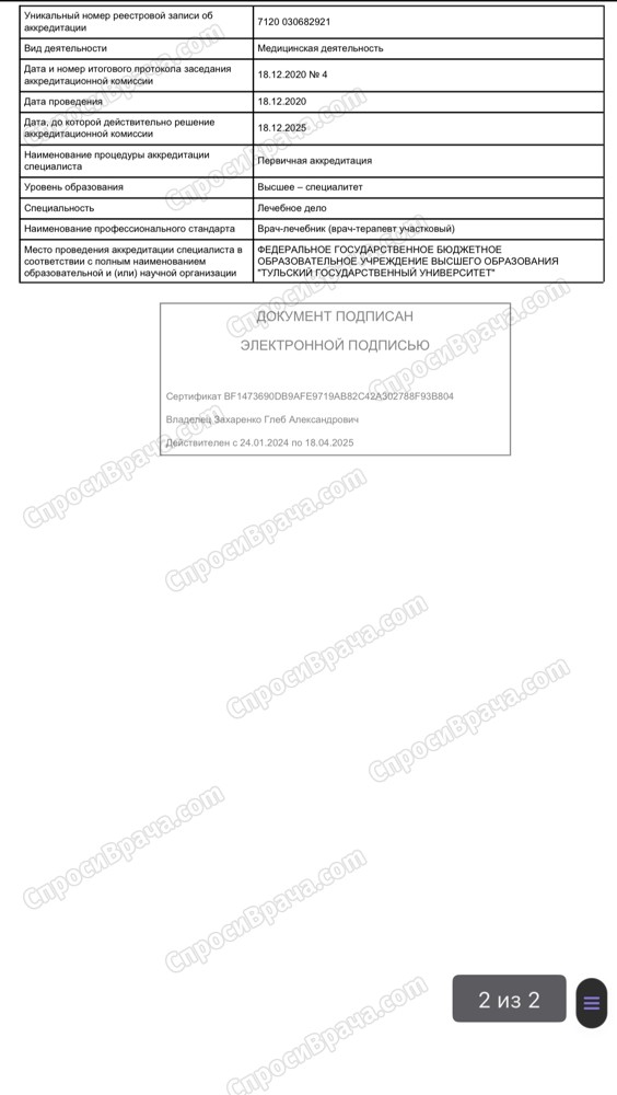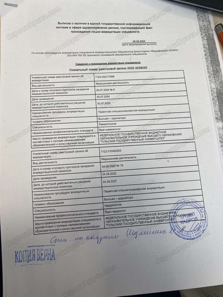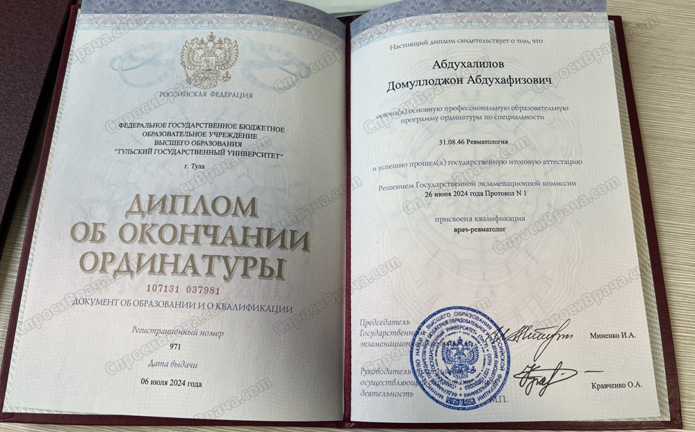 Тульский государственный университет-Медицинский институт-Лечебное дело-Ревматолог-Кардиолог-Терапевт