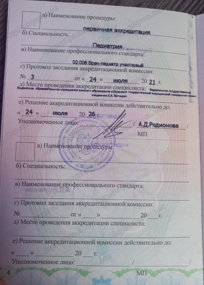 ФГБОУ ВО "Пермский государственный медицинский университет имени ак. Е.А. Вагнера" МЗ РФ, врач-педиатр