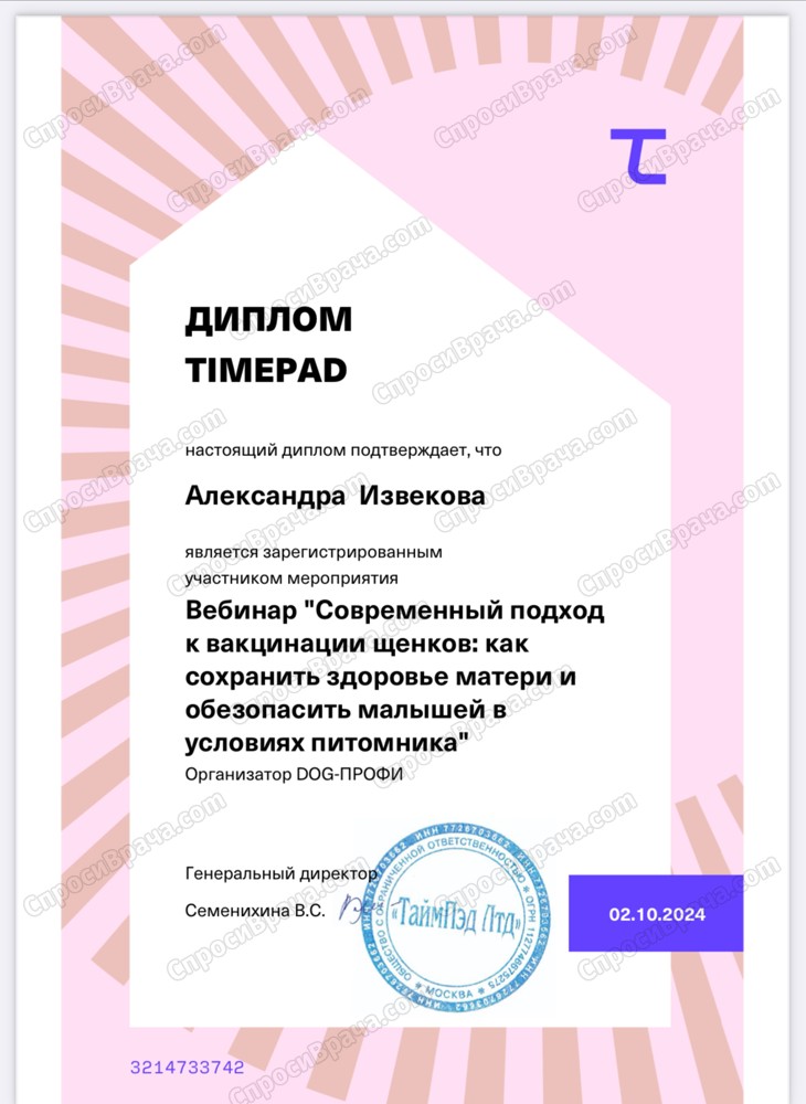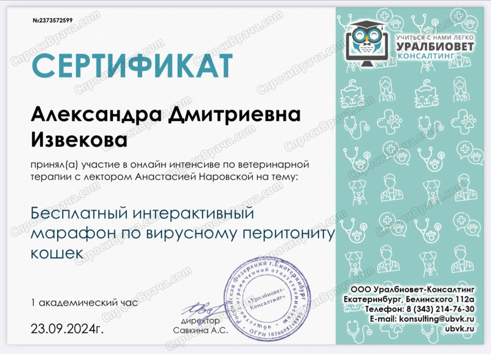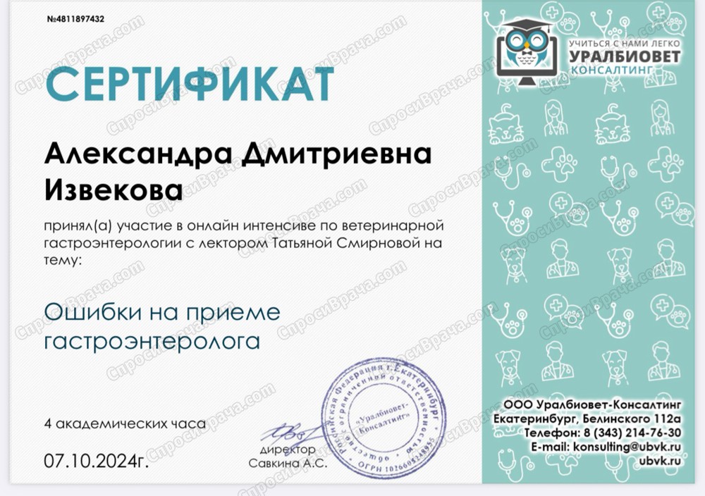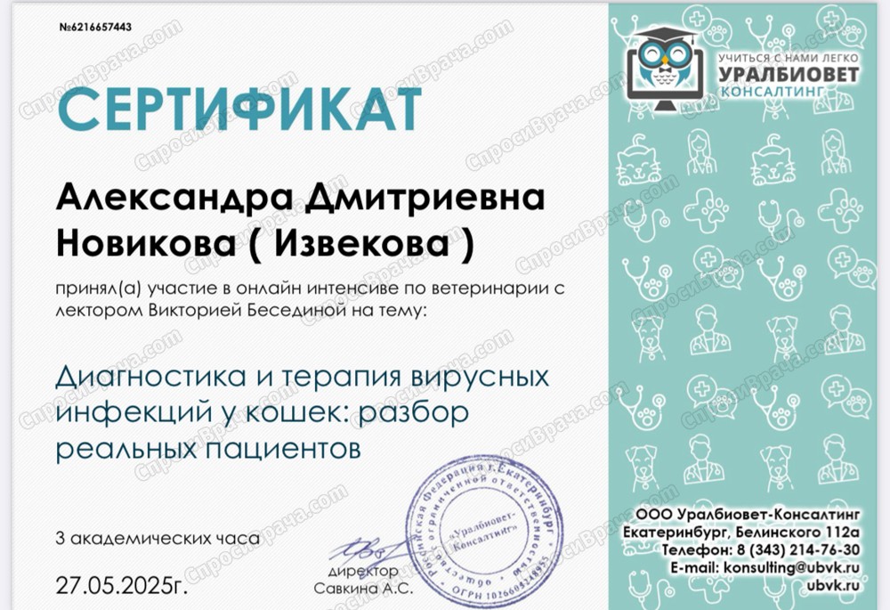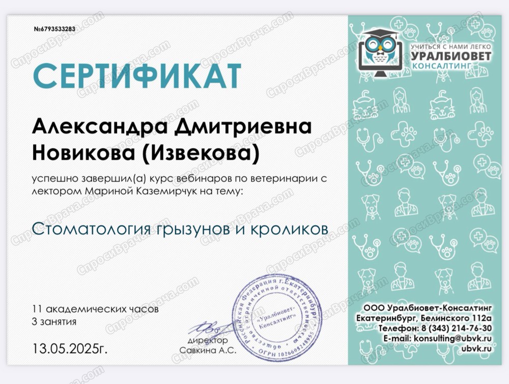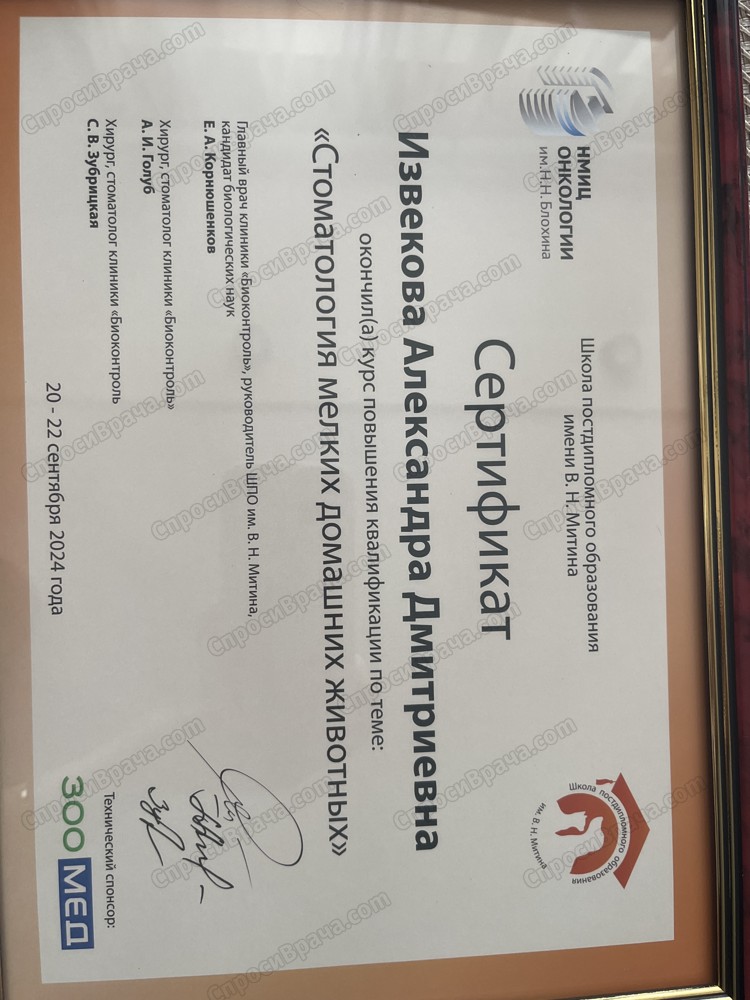 С июня 2024 г. Работаю в частной ветеринарной клинике врачам общей практики, ветеринарный врач-стоматолог ординатор.