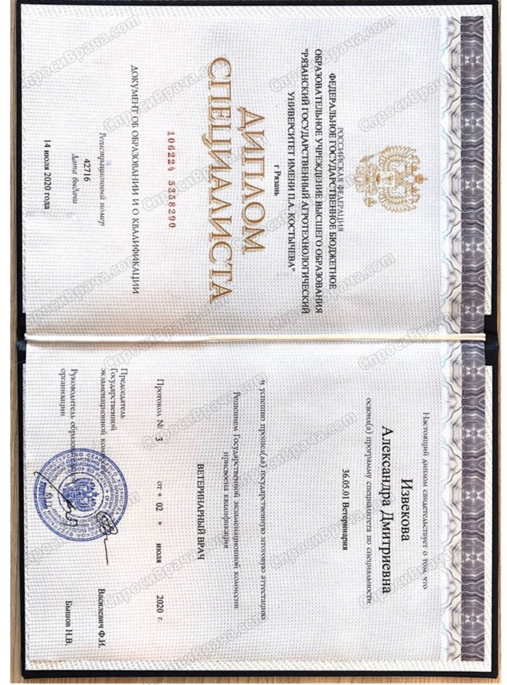 «Рязанский государственный агротехнологический университет имени П.А. Костычева», факультет ветеринарной медицины и биотехнологий, ветеринария.