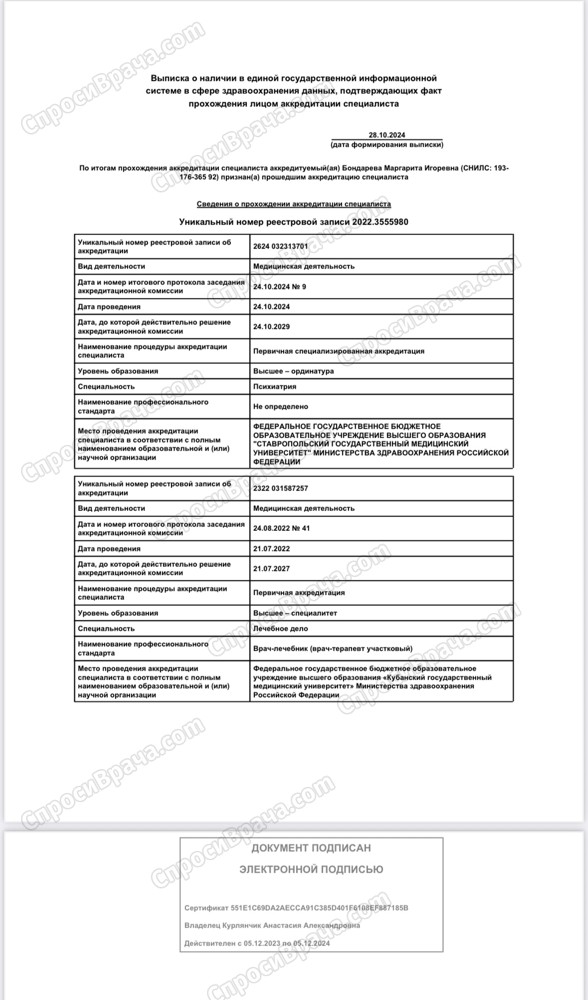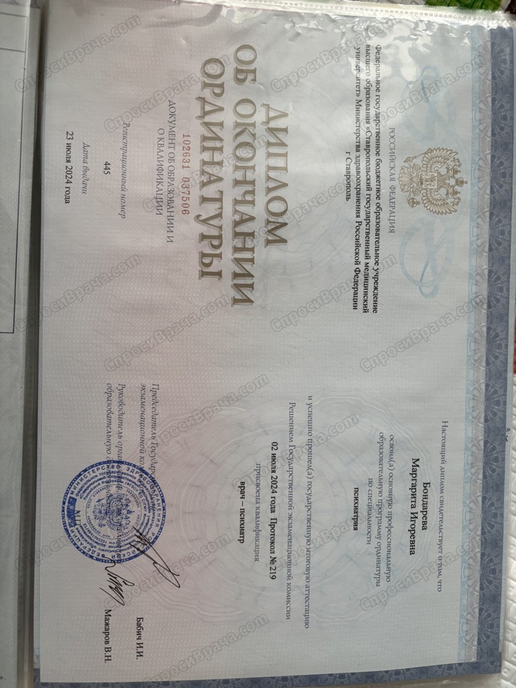 2016-2022, Кубанский государственный медицинский университет, Лечебное дело, Врач-лечебник 2022-2024 Ставропольский государственный медицинский университет, Лечебное дело, Психиатрия