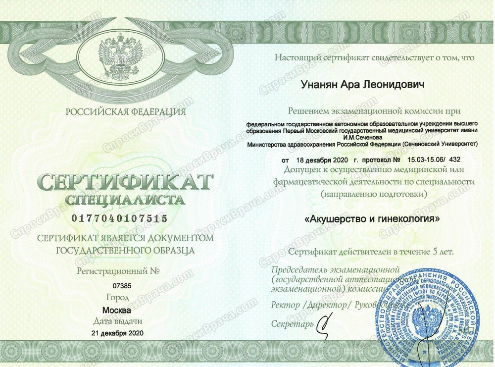2000 - 2023 гг. Регулярные сертификационные циклы повышения квалификации по специальности «Акушерство и гинекология». Первый Московский государственный медицинский университет им. И. М. Сеченова.