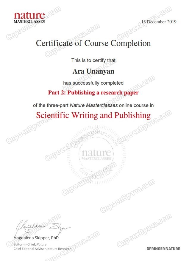 • Более 200 научных публикаций, патенты на изобретения (Сеченовский Университет, г. Москва)