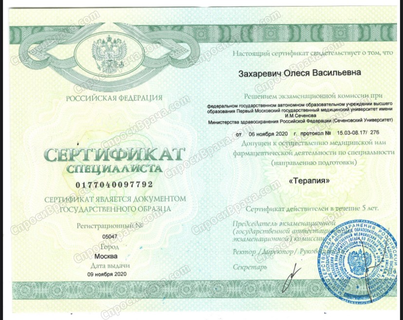 Первое впечатление на 5+.Но вопрос остался открыт, за неимением нужной доктору информации. Буду обращаться ещё к доктору Олесе Захаревич.