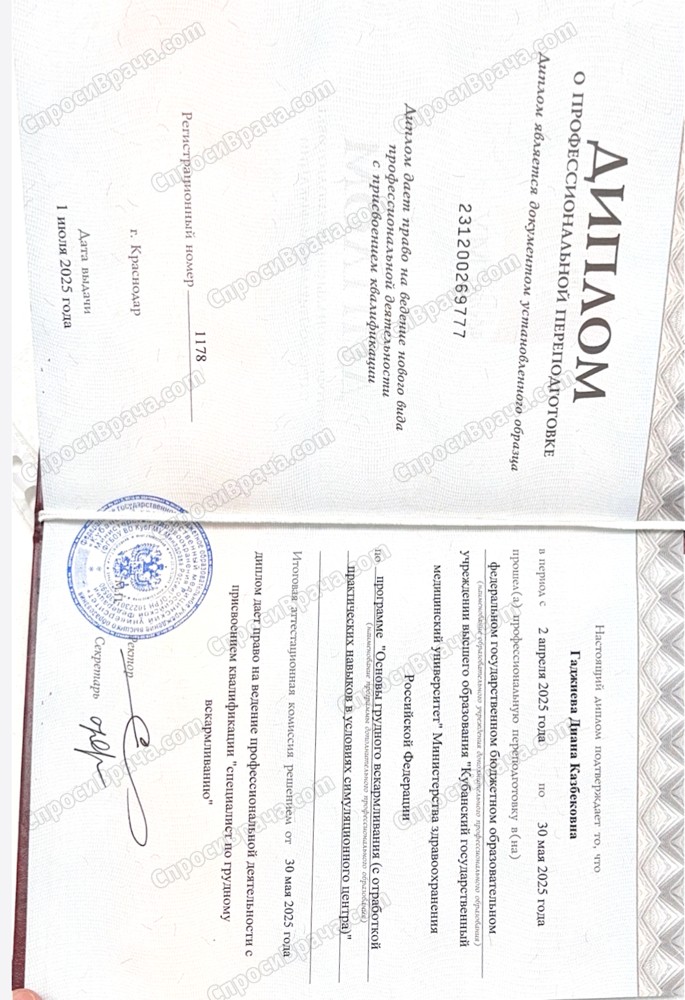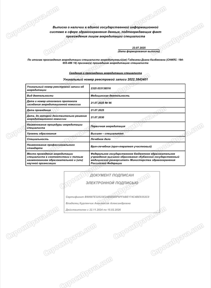 Я - практикующий врач-терапевт, окончила Кубанский государственный медицинский университет. В своей работе я опираюсь на принципы доказательной медицины и большой объем знаний, полученных в alma mater.