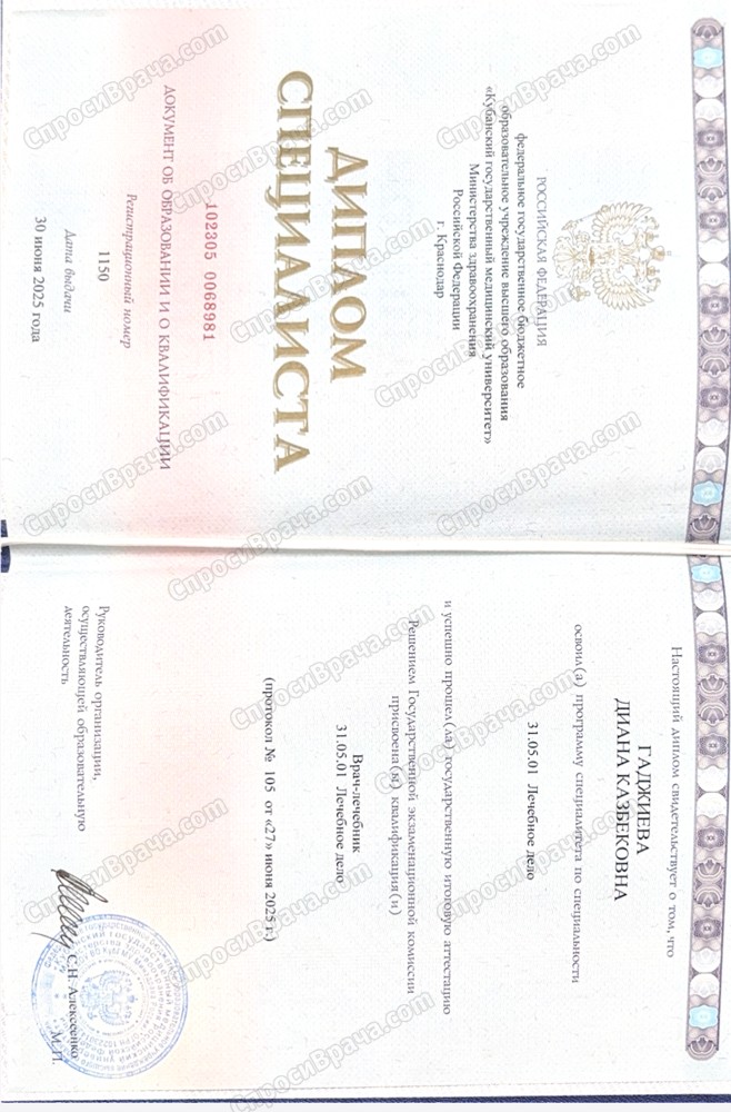 2019-2025, Федеральное государственное бюджетное образовательное учреждение высшего образования «Кубанский государственный медицинский университет» Министерства здравоохранения Российской Федерации, лечебный факультет, врач-лечебник, лечебное дело.