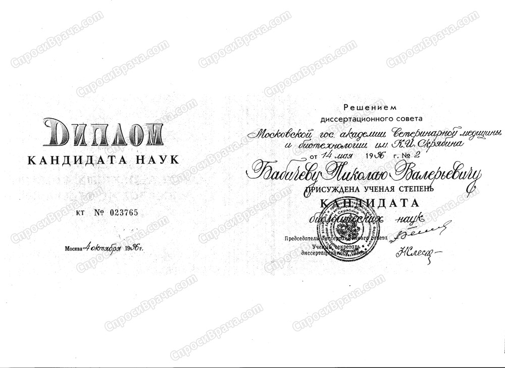 1988 -1993 МВА имени К. И Скрябина ветеринарный, ветеринария, ветеринарный врач