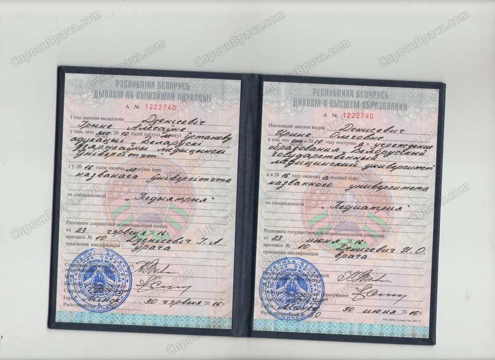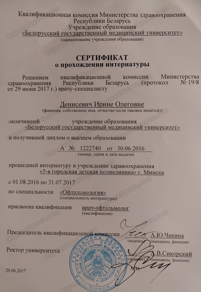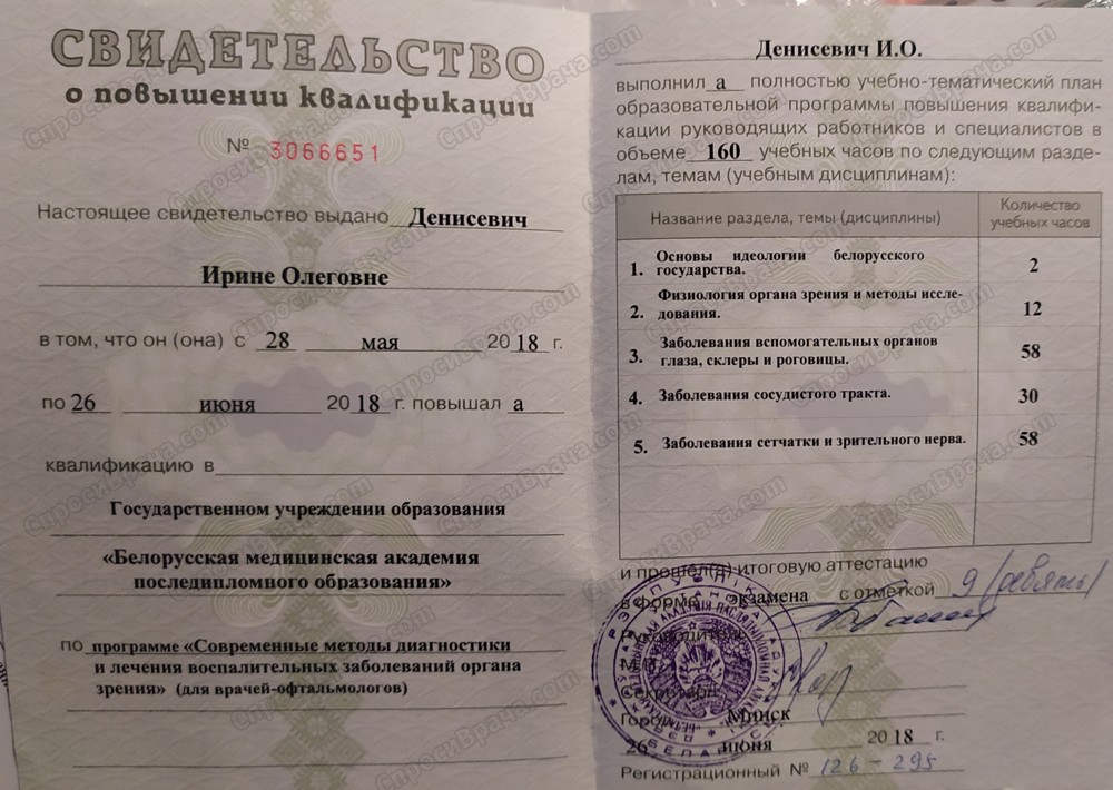 2010-2016 БГМУ педиатрический факультет, врач-офтальмолог, 2 квалификационная категория