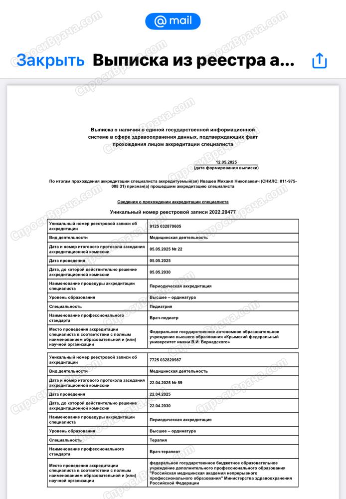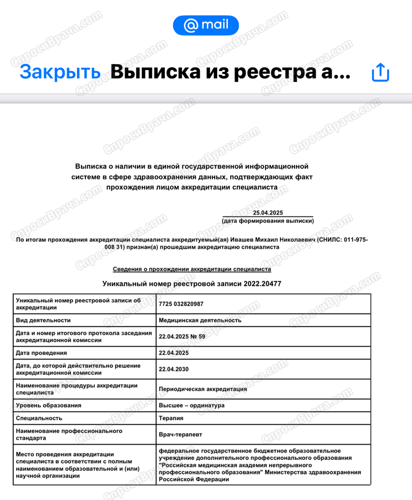 Я давно пользуюсь данным сайтом и приходилось обращаться к врачам с разной специализацией, но именно Михаил Николаевич поразил максимально развёрнутым и подробным ответом на мой вопрос. Вся информация преподнесена доступным, понятным языком.