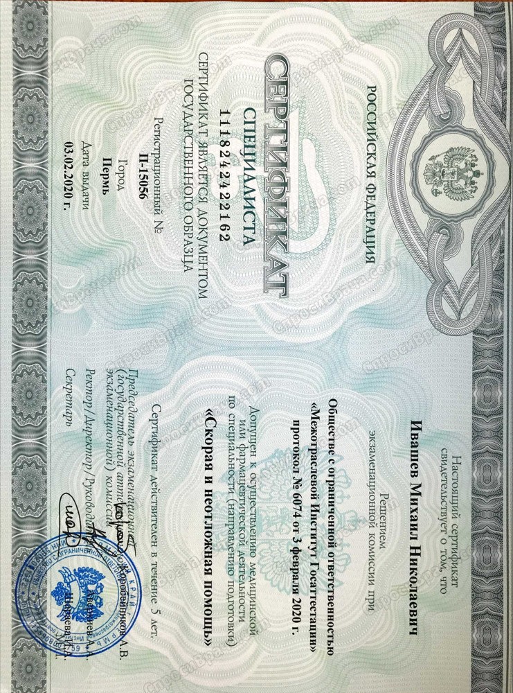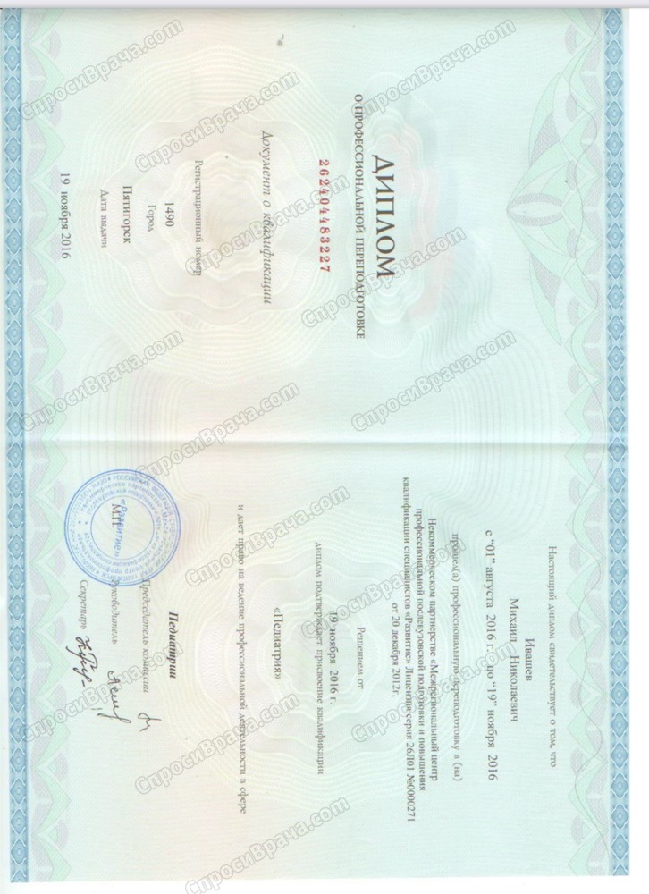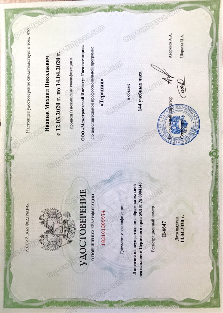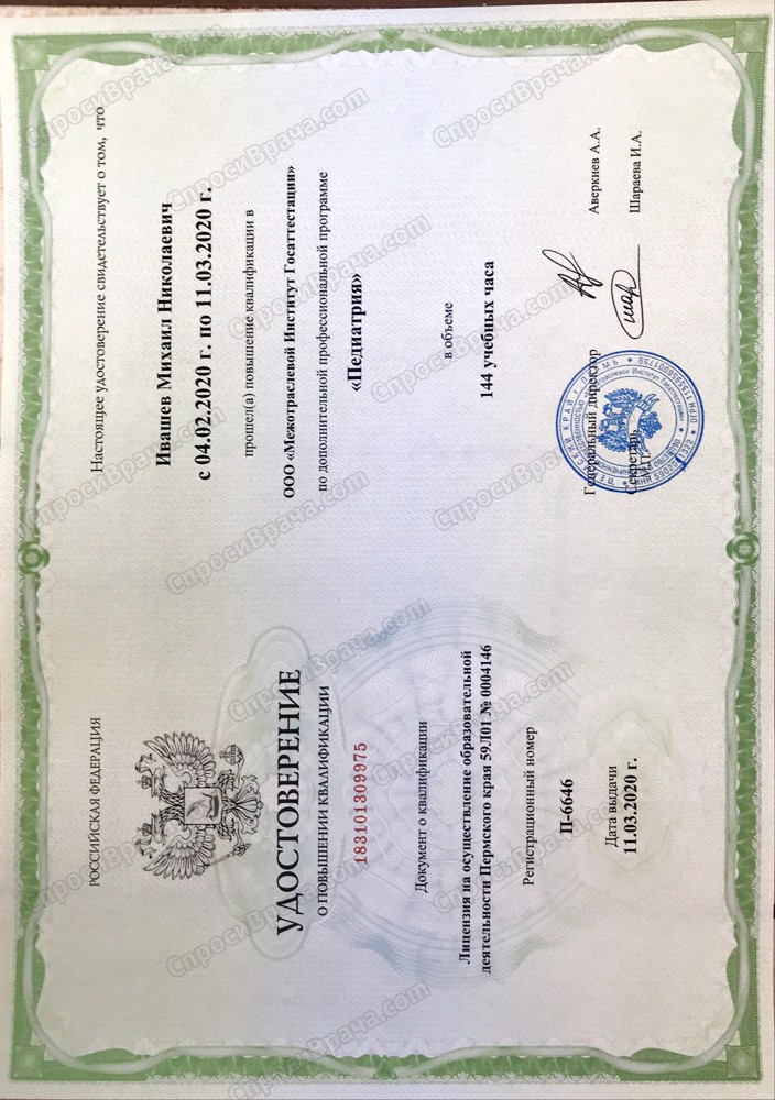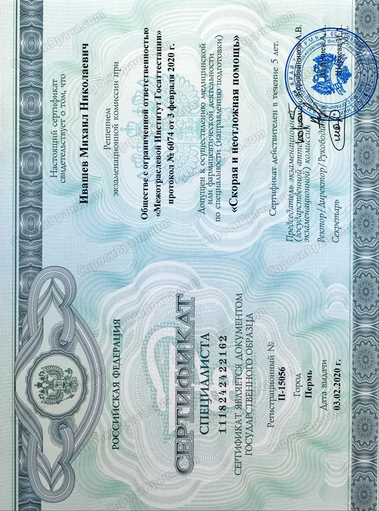 Действующие сертификаты по Скорой неотложной помощи, Педиатрии, Терапии.