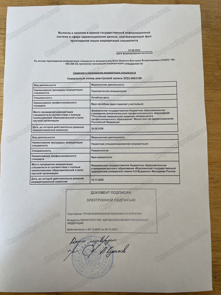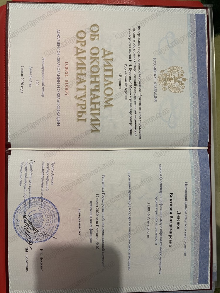 ВГМУ им. Н.Н. Бурденко, лечебное дело, врач терапевт, ординатура по ревматологии