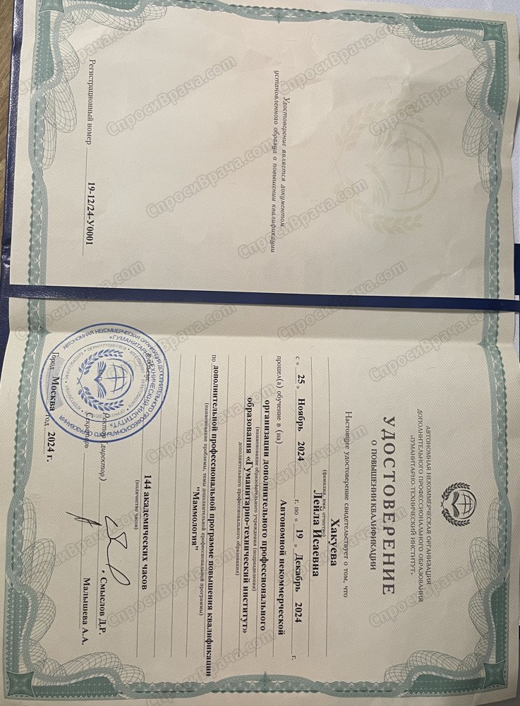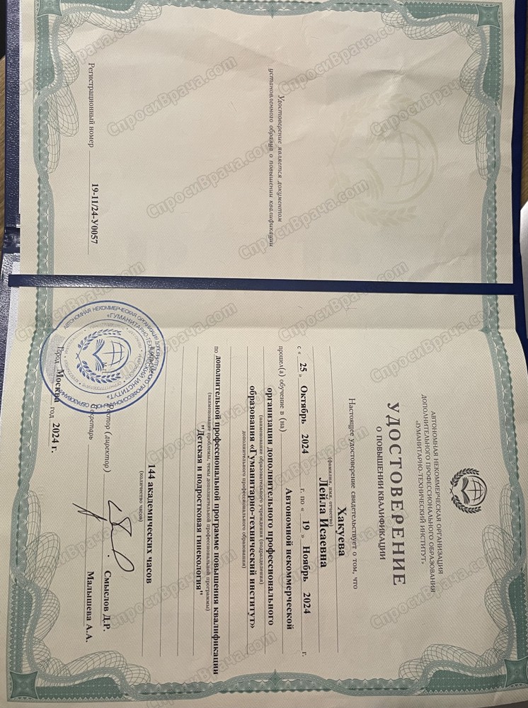 С 2024 г - дополнительная специализация по вопросам состояния молочных желез, детской и подростковой гинекологии.