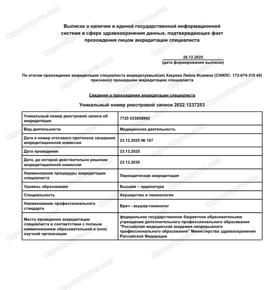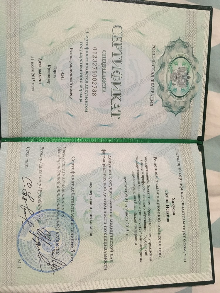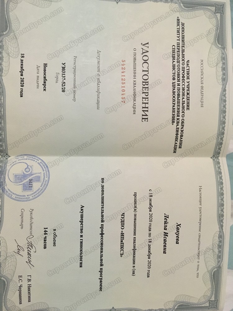 в декабре 2020 г - повышение квалификации по специальности " акушерство и гинекология"