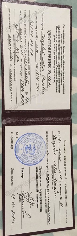 2007-2014, Кубанский государственный медицинский университет, лечебный факультет, Врач, Лечебное дело, Акушерство и Гинекология