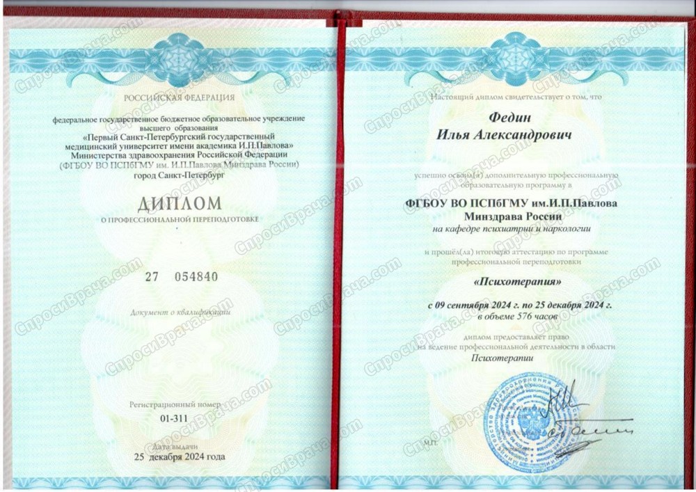 2010-2019 ПСПБГМУ им. ак. И.П. Павлова, кафедра психиатрии и наркологии. Врач-психиатр.