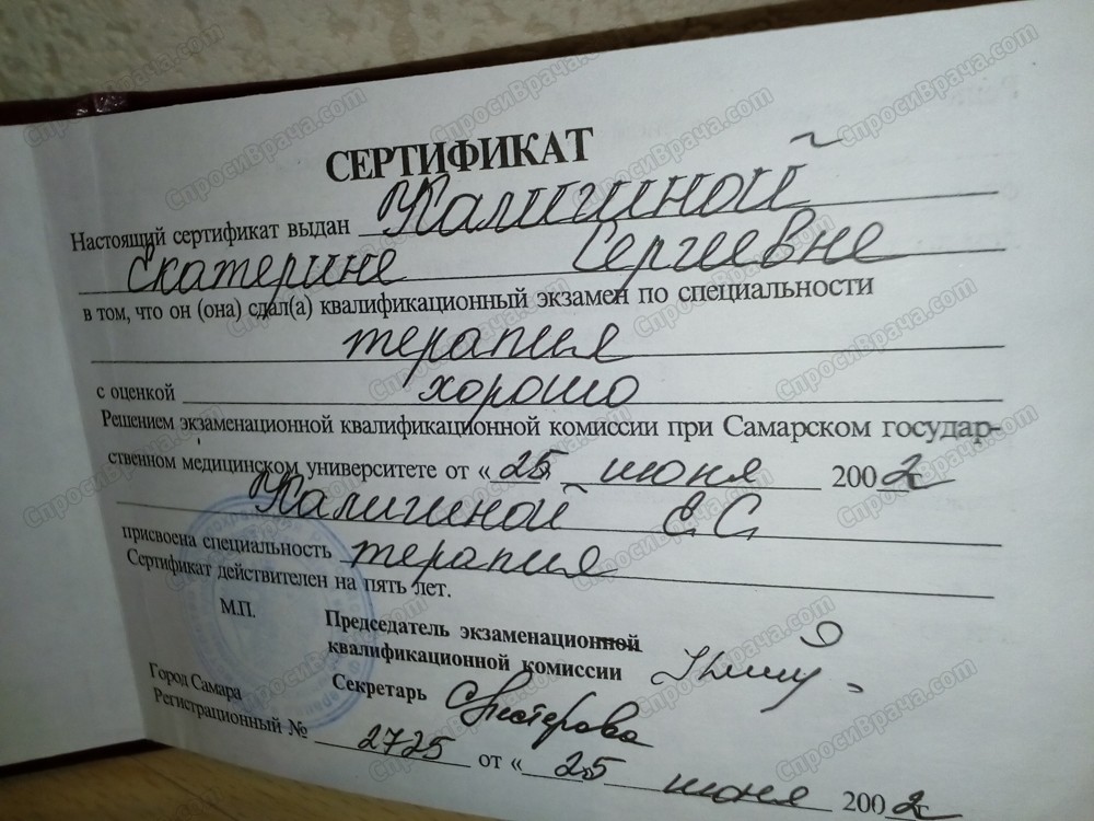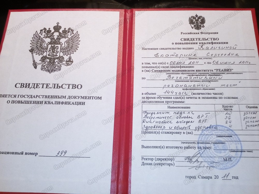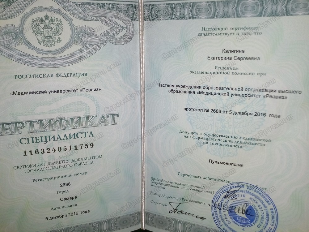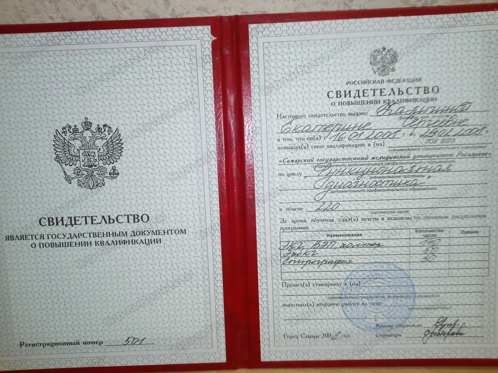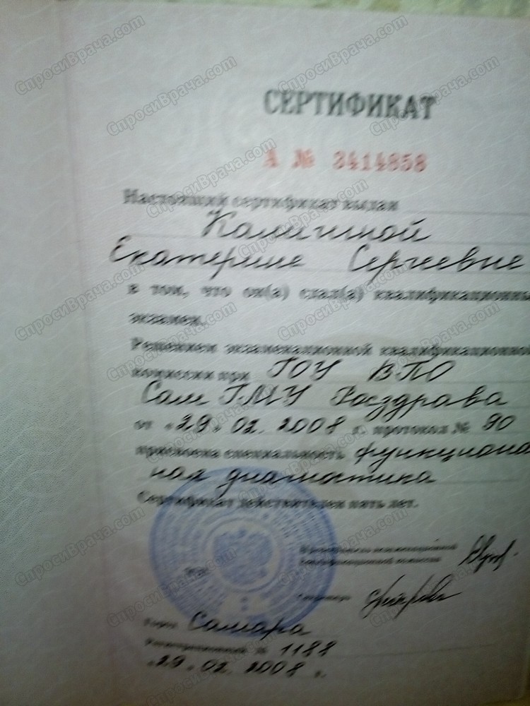 • 2008 г. - подтверждение сертификата «Функциональная диагностика», СМУ «РЕАВИЗ».