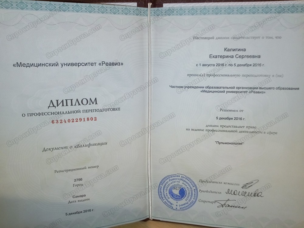 • 2018 г.- по настоящее время – врач-пульмонолог АО «Самарского Диагностического Центра».
