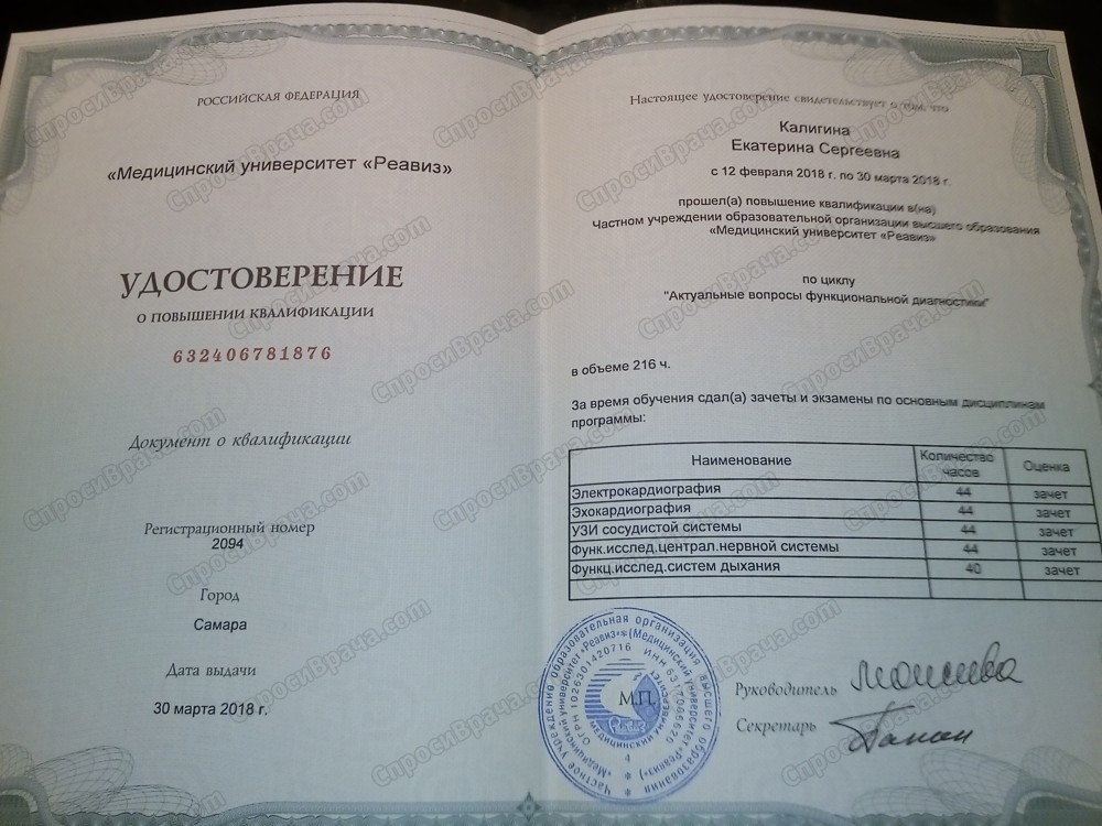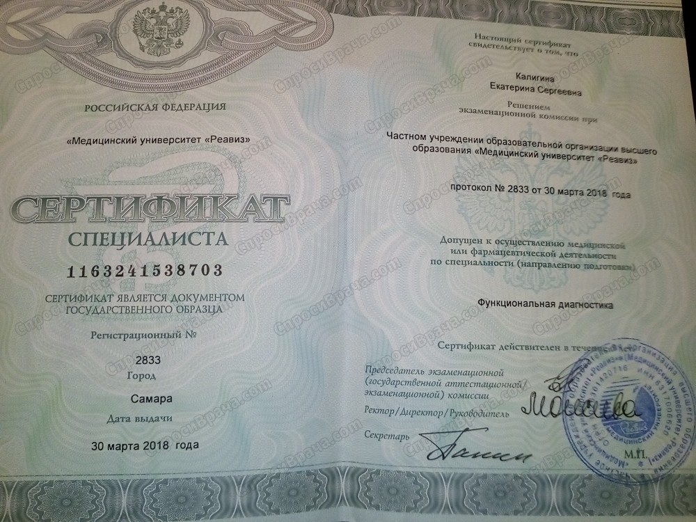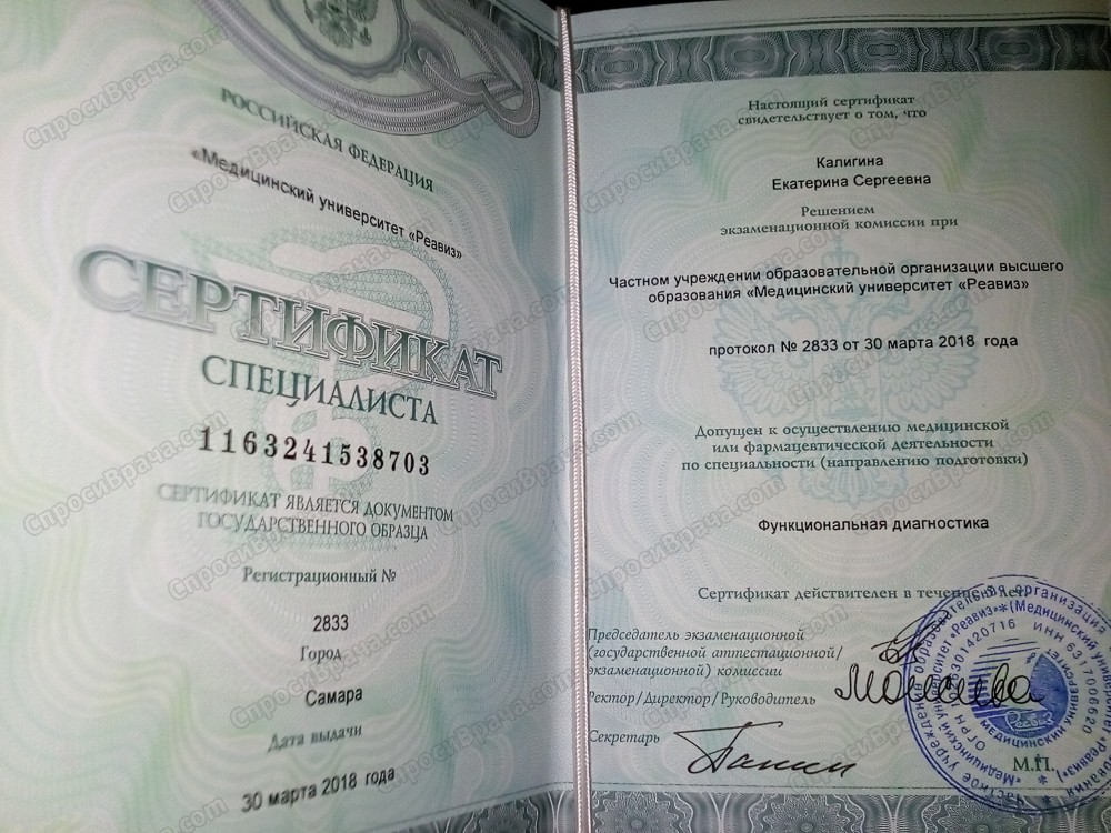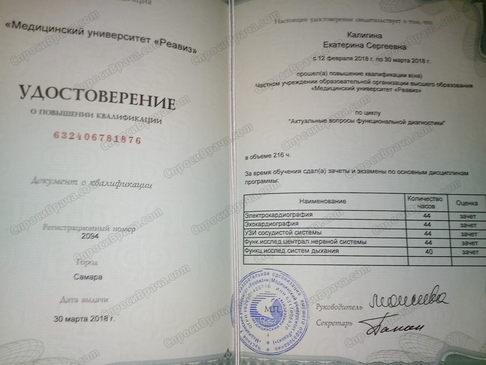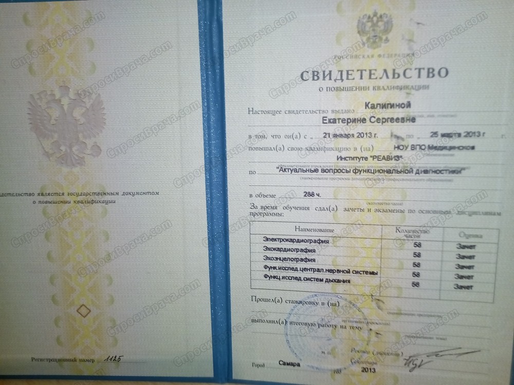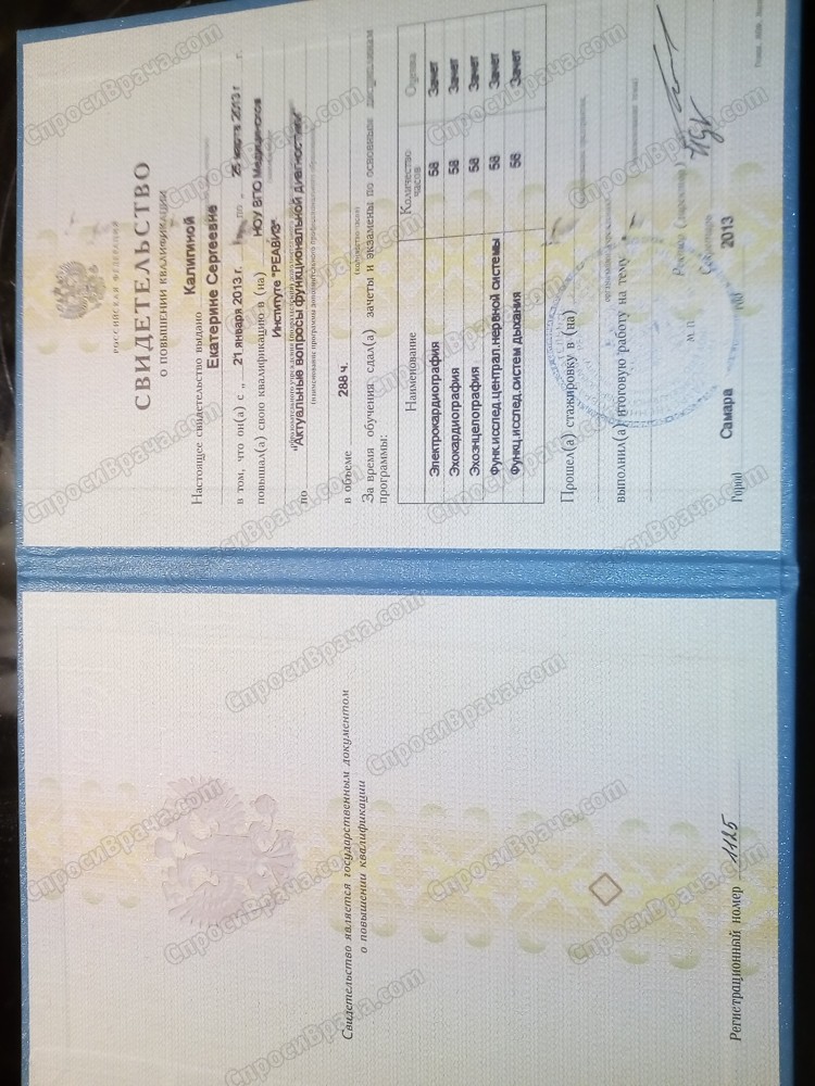 • 2013 г. - подтверждение сертификата «Функциональная диагностика», СМУ «РЕАВИЗ».