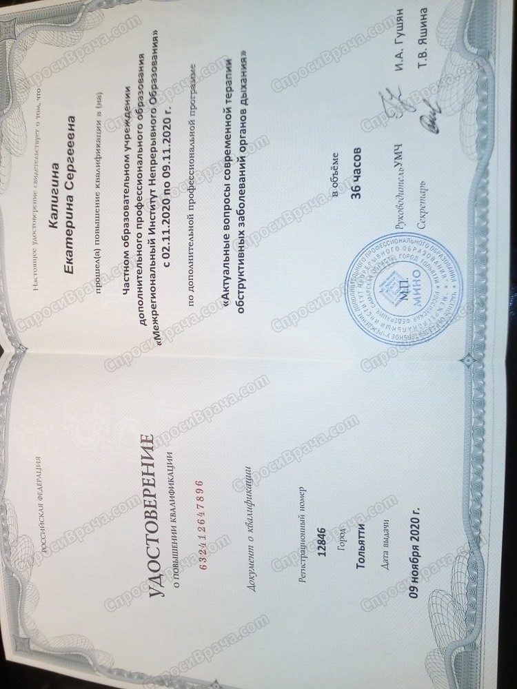 • 11-16.07.2022 г.- курс Клиническая фармакология бронхолегочных и аллергических заболеваний, ЧОУ ДПО "МИНО".