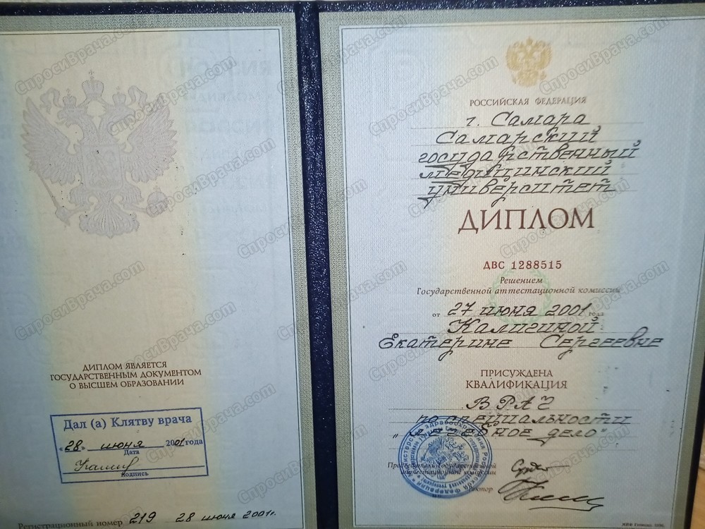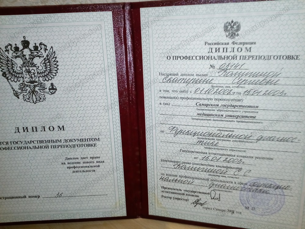 • 2001г.-2009 г. ГБУЗ СО СГБ №4 - врач функциональной диагностики.