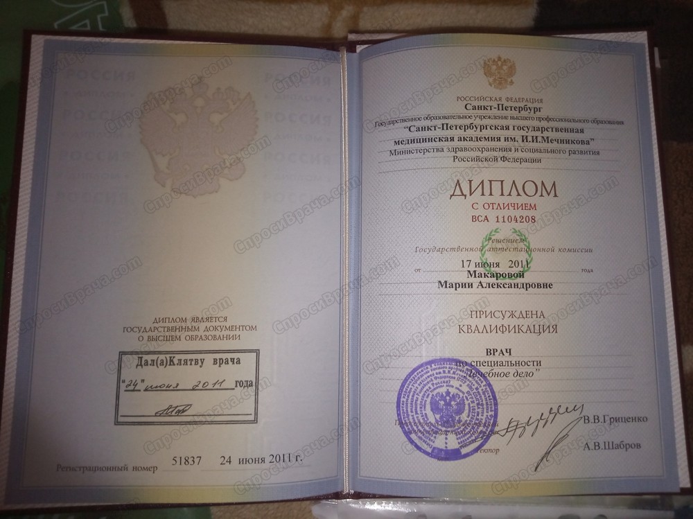 2005-2011 Санкт-Петербургская государственная академия им. И.И. Мечникова Лечебное дело 2011-2013 Ординатура по специальности «Терапия» на базе ГБОУ ДПО ПИУВ Минздрава России.