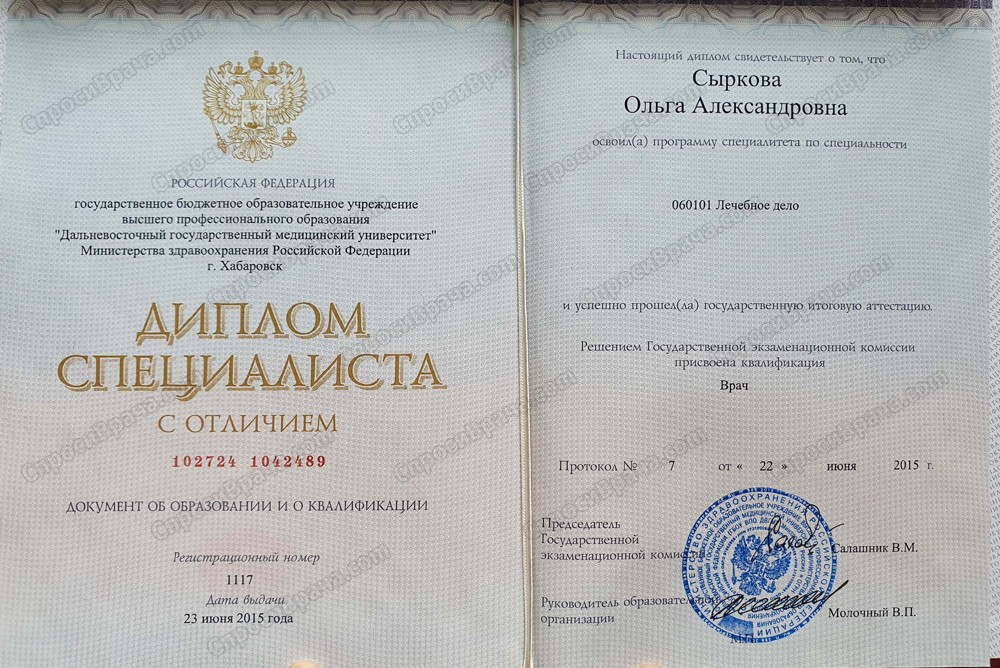 2009-2015 гг., ДВГМУ, лечебный факультет, лечебное дело